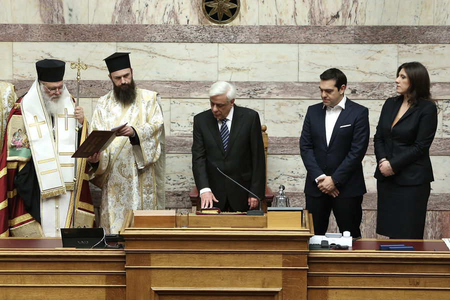 Στις 18 Φεβρουαρίου εκλέγεται πρόεδρος της Δημοκρατίας ο Προκόπης Παυλόπουλος ο οποίος αναλαμβάνει τα καθήκοντά του στις 13 Μαρτίου, όταν έληξε η θητεία του Κάρολου Παπούλια. Ορκίστηκε ενώπιον της Ολομέλειας της Βουλής των Ελλήνων, του Πρωθυπουργού Αλέξη Τσίπρα και του αρχιεπισκόπου Αθηνών και Πάσης Ελλάδος Ιερωνύμου.