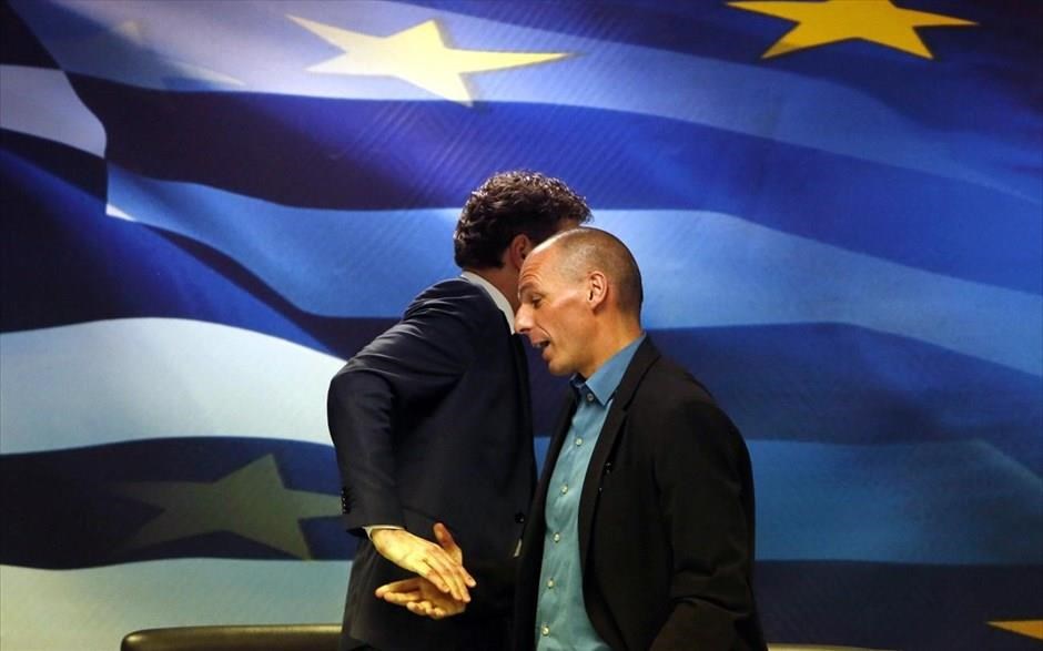 Πέντε ημέρες αργότερα η κυβέρνηση απευθύνει το πρώτο «όχι» στους δανειστές «δια χειρός» Βαρουφάκη. Η φωτογραφία με την αμήχανη χειραψία του επικεφαλής του Eurogroup Jeroen Dijsselbloem και του τότε έλληνα υπουργού Οικονομικών, κατά την συνάντησή τους στις 30 Ιανουαρίου στην Αθήνα, καταγράφεται στους πηχυαίους τίτλους εγχώριων και διεθνών μέσων ενημέρωσης μαζί με τη δήλωση του κ. Βαρουφάκη για την τρόικα ή τους θεσμούς: «Με αυτή τη σαθρά δομημένη επιτροπή δεν έχουμε στόχο να συνεργαστούμε»!