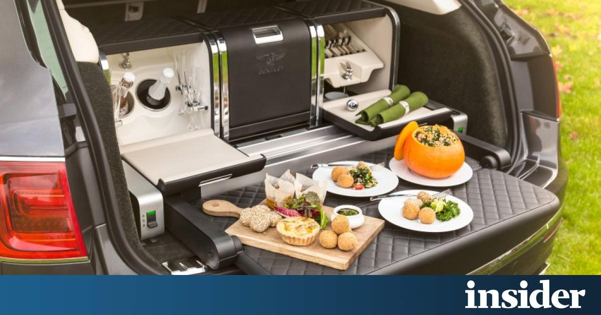 Ξεκινάμε με μια premium εταιρία, την Bentley. Στο πρώτο της SUV λοιπόν, την Bentayga, τοποθέτησε ένα σετ για πιν νικ στην εξοχή. Μη φανταστείτε ότι θα στρώσετε στην ύπαιθρο το καρό τραπεζομάντιλο και θα βγάλετε από το ψάθινο καλαθάκι κεφτεδάκια. Στο πορτμπαγκάζ της Bentayga υπάρχει μια ειδική κατασκευή, όπου φιλοξενείται ένα πλήρες σερβίτσιο από πορσελάνινα πιάτα και μαχαιροπίρουνα, αλλά και ειδικός χώρος για να διατηρείται παγωμένη η σαμπάνια, την οποία μπορείτε να απολαύσετε σε κρυστάλλινα ποτήρια. Σας ευχόμαστε καλή όρεξη αν καταφέρετε βέβαια να χωνέψετε ότι η τιμή του εν λόγω αξεσουάρ φτάνει τα 25.000 ευρώ.