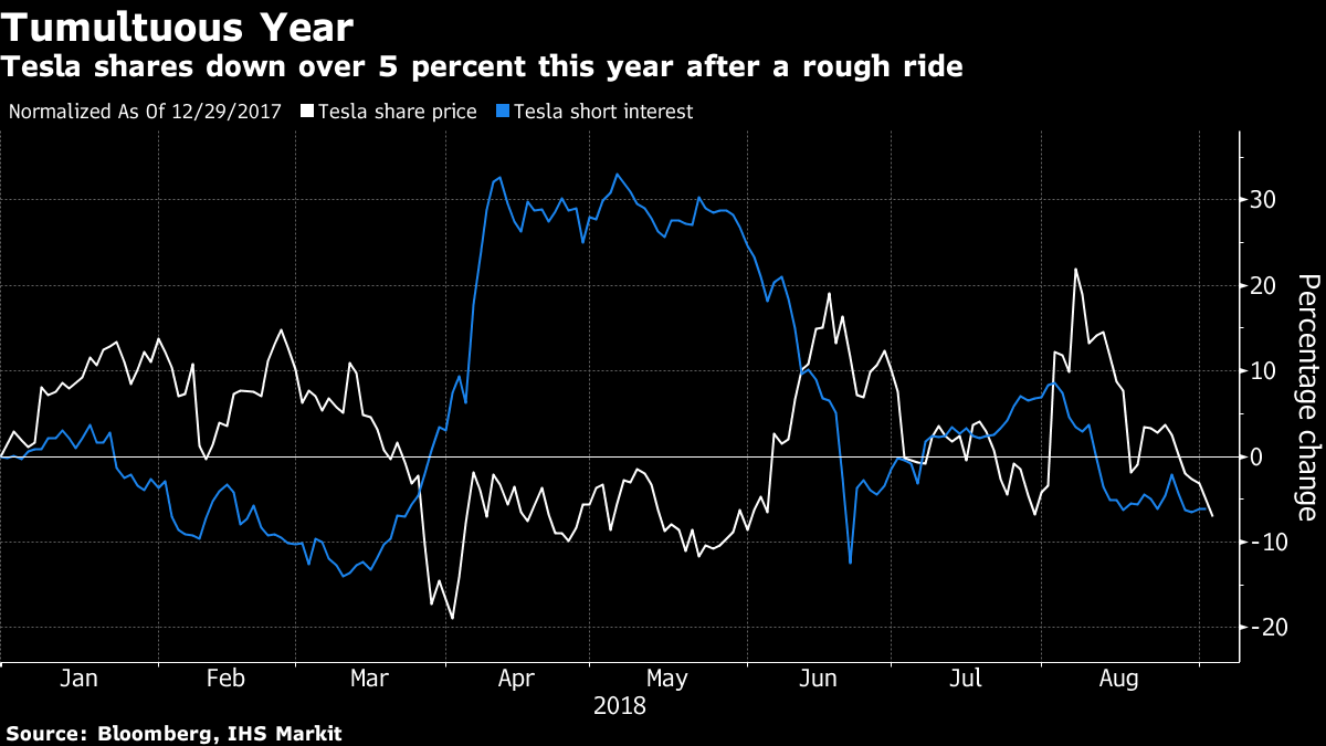 Το αποτέλεσμα είναι η μετοχή της Tesla να βρίσκεται στο μάτι του κυκλώνα των ρευστοποιήσεων, με τη συνεδρίαση της Τρίτης στη Wall Street να βρίσκει τον τίτλο του αμερικανικού κολοσσού 4,5% χαμηλότερα, στα χαμηλότερα επίπεδα από τις 30 Ιουλίου. Η μετοχή έχει χάσει 23% από τις αναρτήσεις του Μασκ στο Twitter στις αρχές Αυγούστου ότι θα βγάλει την εταιρεία του από το χρηματιστήριο.
