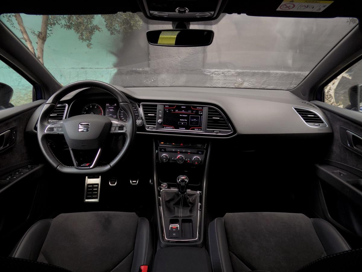 Εισερχόμενοι στα ενδότερα του Leon Cupra, γίνεται άμεσα αντιληπτή η σύγχρονη και λιτή λογική του μικρομεσαίου μοντέλου, καθώς και η ποιοτική κατασκευή του, με τα υλικά που έχουν χρησιμοποιηθεί να είναι ανθεκτικά και με την κατάλληλη συναρμογή. Σε εξαιρετικό επίπεδο βρίσκεται τόσο η εργονομία, όσο και η πρακτικότητα, όμως ένα από τα βασικά πλεονεκτήματα και του Leon Cupra παραμένουν οι προσφερόμενοι χώροι. Πέντε ενήλικες θα βολευτούν με σχετική άνεση, απολαμβάνοντας υπέρ του δεόντως ικανοποιητικό χώρο, ενώ ο χώρος αποσκευών προσφέρει χωρητικότητα 380 λίτρων, διαθέσιμων για μεταφορές αντικειμένων όλων των ειδών και μεγεθών.
