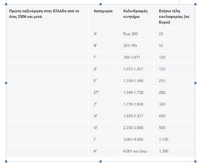 -Από 22 έως 1.380 ευρώ για οχήματα που κυκλοφόρησαν από 2006 έως 2010.