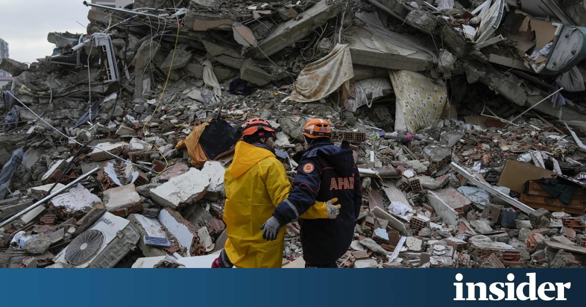 «Ακούγονται ήχοι αλλά κανένας δεν βγαίνει έξω», λέει ο Ντενίζ κρατώντας με τα χέρια του το κεφάλι του και διαμαρτύρεται για την έλλειψη προσπαθειών διάσωσης τυχόν εγκλωβισμένων στα χαλάσματα κτιρίων που κατέρρευσαν μετά τον σεισμό σε Τουρκία και Συρία με χιλιάδες νεκρούς.