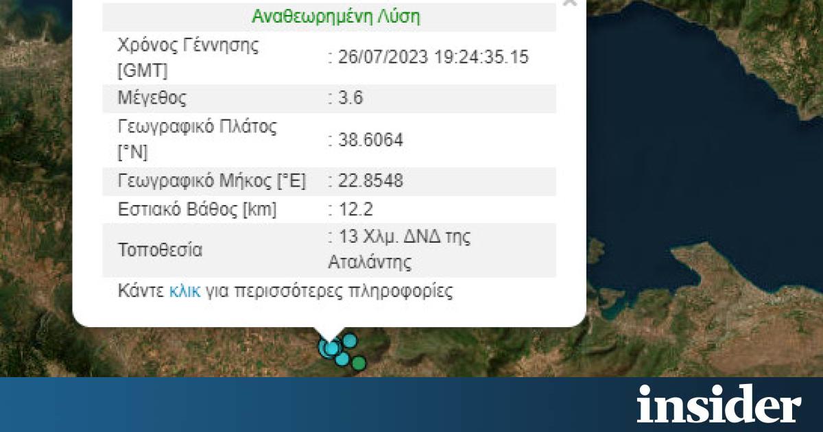Ο σεισμός σημειώθηκε 13 χιλιόμετρα νοτιοδυτικά της Αταλάντης και το εστιακό βάθος εντοπίζεται στα 12,2 χιλιόμετρα.