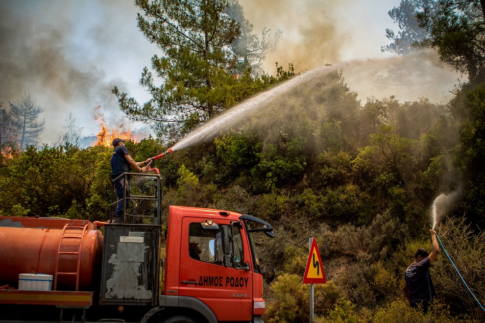 Σε εξέλιξη βρίσκεται, για 10η ημέρα, η πυρκαγιά στη Ρόδο, όπου κατά τη διάρκεια της νύχτας σημειώθηκαν αναζωπυρώσεις κοντά στα χωριά Βάτι και στο Γεννάδι. Για την αντιμετώπισή τους επιχειρούν από τα ξημερώματα ισχυρές πυροσβεστικές δυνάμεις και εθελοντές, ενώ γίνονται και απανωτές ρίψεις νερού από τα πυροσβεστικά αεροπλάνα.
