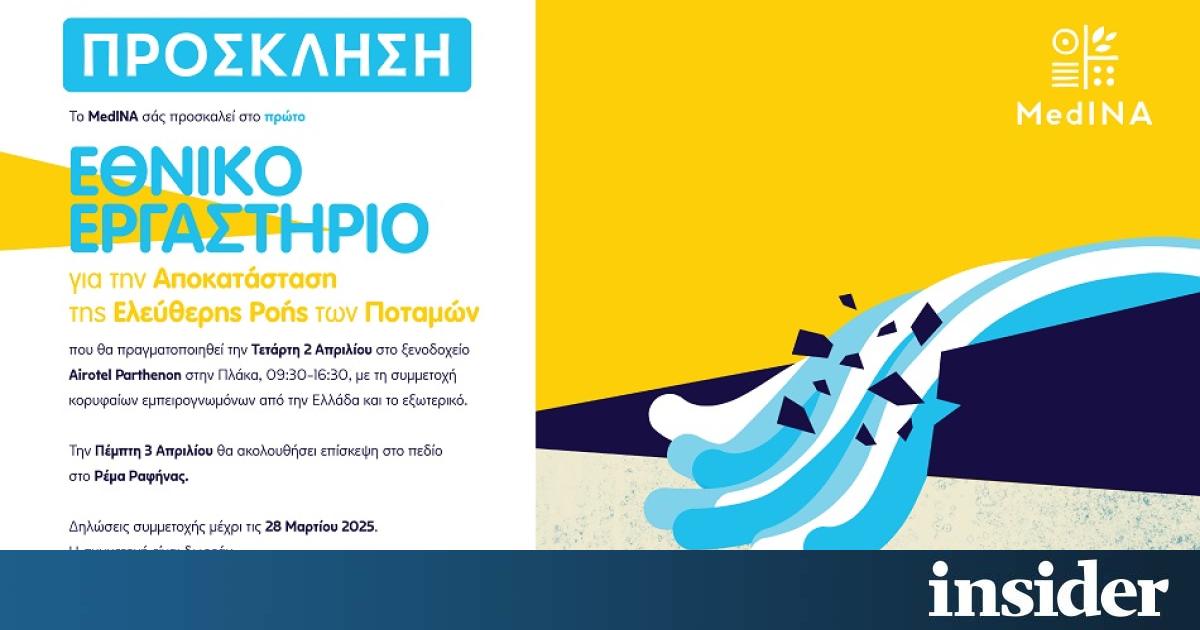 Σε όλη την Ευρώπη τα ποτάμια απελευθερώνονται. Πλέον ήρθε η ώρα και για την Ελλάδα! Σε μια καινοτόμα για τα ελληνικά δεδομένα πρωτοβουλία, το MedINA διοργανώνει το πρώτο «Εθνικό Εργαστήριο για την Αποκατάσταση της Ελεύθερης Ροής των Ποταμών» της χώρας, όπου κορυφαίοι εμπειρογνώμονες από την Ελλάδα και το εξωτερικό θα βρεθούν στην Αθήνα στις 2 και 3 Απριλίου.