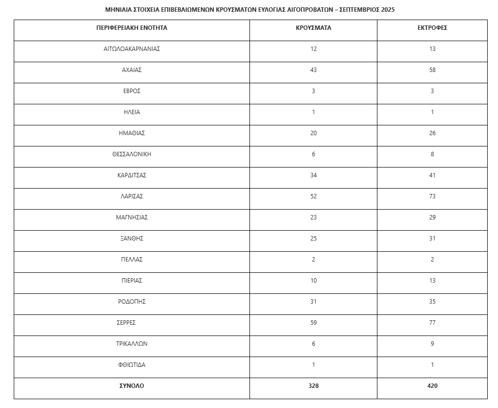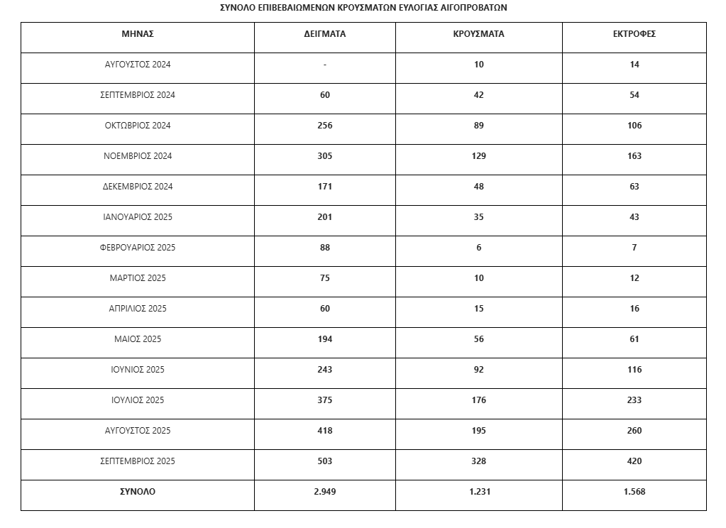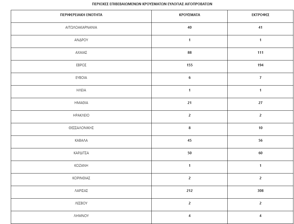 Ακολουθούν τα επίσημα στοιχεία για την πορεία της ευλογιάς των αιγοπροβάτων, έως τέλος Σεπτεμβρίου: