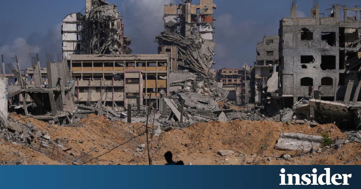 Σύμφωνα με το Πρόγραμμα των Ηνωμένων Εθνών για το Περιβάλλον (Unep), σχεδόν τα δύο τρίτα των ερειπίων έχουν δημιουργηθεί στη διάρκεια των πέντε πρώτων μηνών του πολέμου. Αλλά κατά τους τελευταίους μήνες πριν από την κατάπαυση πυρός εντάθηκε η καταστροφή των κτιρίων, με 8 εκατ. τόνους ερειπίων να δημιουργούνται μεταξύ Απριλίου και Ιουλίου 2025. Το μεγαλύτερο μέρος τους στο νότιο τμήμα του θύλακα, μεταξύ Ράφα και Χαν Γιούνις.