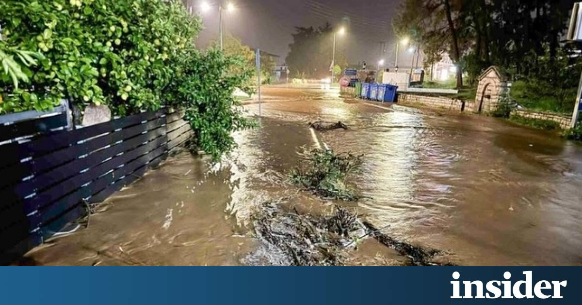 «Συνεργεία του δήμου προσπαθούν να κόψουν τους κορμούς των δέντρων και να απεγκλωβίσουν το όχημα», ανέφερε ο ρεπόρτερ, σημειώνοντας ότι οι ζημιές είναι εκτεταμένες.
