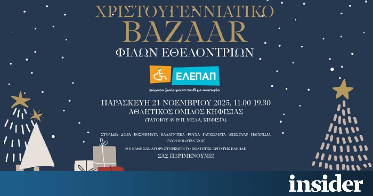 Οι Φίλες Εθελόντριες της ΕΛΕΠΑΠ σας προσκαλούν στο καθιερωμένο Χριστουγεννιάτικο Bazaar που διοργανώνουν την Παρασκευή 21 Νοεμβρίου 2025, από τις 11:00 το πρωί μέχρι τις 19:30 το απόγευμα, στον Αθλητικό Όμιλο Κηφισιάς (Τατοΐου 49 & Π. Μελά, Κηφισιά).