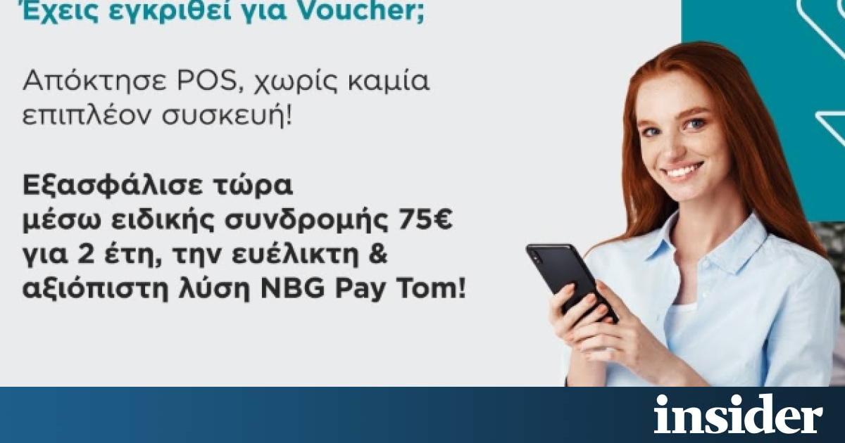 Οι δικαιούχοι της Κατηγορίας 1 του προγράμματος έχουν τη δυνατότητα να αποκτήσουν το NBG Pay tom μέσω ειδικής διετούς συνδρομής 75€, η οποία παρέχεται από την EPSILONNET και επιδοτείται εξ ολοκλήρου (100%) μέσω της ψηφιακής επιταγής (Voucher).