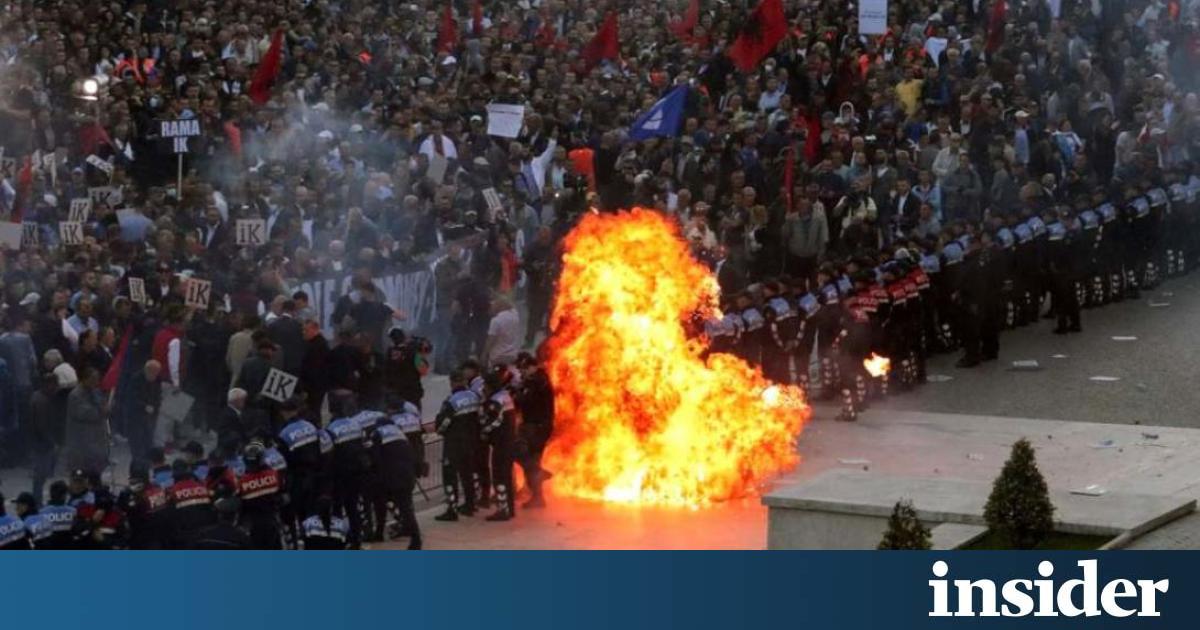 Κατά τη σημερινή πολιορκία του γραφείου του πρωθυπουργού, άνδρες των ειδικών δυνάμεων της αλβανικής αστυνομίας σχημάτισαν κλοιό ασφαλείας γύρω από το κυβερνητικό κτίριο, αλλά δεν απώθησαν τους διαδηλωτές.