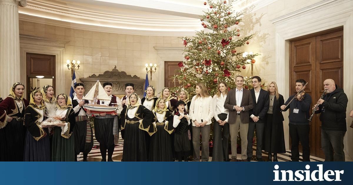 Χριστουγεννιάτικα κάλαντα άκουσαν στο Μέγαρο Μαξίμου ο Πρωθυπουργός Κυριάκος Μητσοτάκης, η σύζυγός του Μαρέβα Γκραμπόφσκι-Μητσοτάκη και τα παιδιά τους Σοφία, Κωνσταντίνος και Δάφνη.