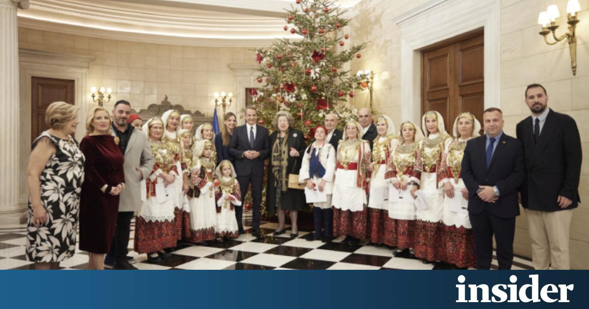 Κάλαντα της Πρωτοχρονιάς άκουσαν στο Μέγαρο Μαξίμου ο πρωθυπουργός Κυριάκος Μητσοτάκης και η κόρη του Σοφία.