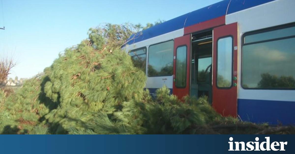 Μεγάλο πεύκο έπεσε πάνω στο βαγόνι του μηχανοδηγού, κατά τη διέλευση τρένου από το δρομολόγιο Πύργος – Κατάκολο – Ολυμπία, στο ύψος του Αγίου Κωνσταντίνου.