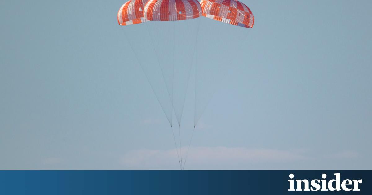 Το σκάφος τους, το Ωρίων, έκανε την είσοδό του την ατμόσφαιρα με ταχύτητα πάνω από 38.000 χιλιόμετρα την ώρα και τις δυνάμεις τριβής να προκαλούν θερμοκρασίες πάνω από τους 2.700° Κελσίου, προτού πάντως προσθαλασσωθεί χωρίς πρόβλημα στον Ειρηνικό, επιβραδυνόμενο από μεγάλα αλεξίπτωτα, όπως ακριβώς την εποχή του προγράμματος Apollo.