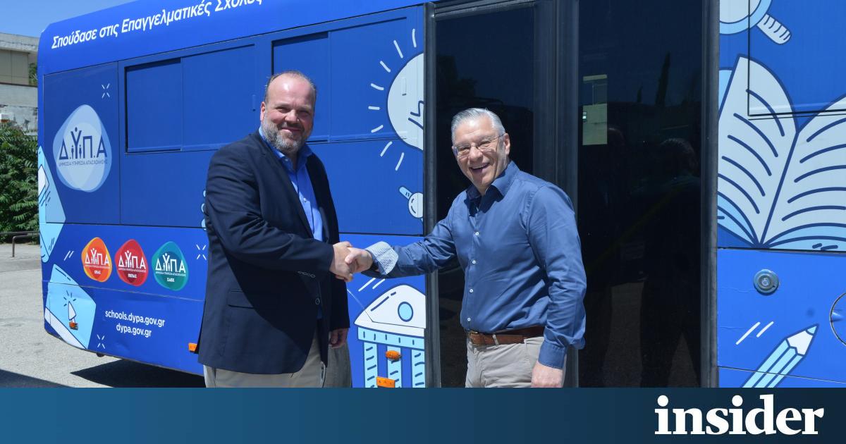 Η παραλαβή πραγματοποιήθηκε σήμερα στις εγκαταστάσεις της ΔΥΠΑ στο Αιγάλεω, παρουσία των επικεφαλής των δύο φορέων μπροστά από τα ειδικά διαμορφωμένα λεωφορεία, τα οποία θα φέρουν επιγραφές με το λογότυπο της ΔΥΠΑ, αναδεικνύοντας τη στήριξη των νέων που επιλέγουν την επαγγελματική εκπαίδευση για τη βελτίωση της καθημερινότητάς τους.