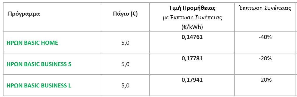 Οι τιμές για το πράσινο τιμολόγιο:
