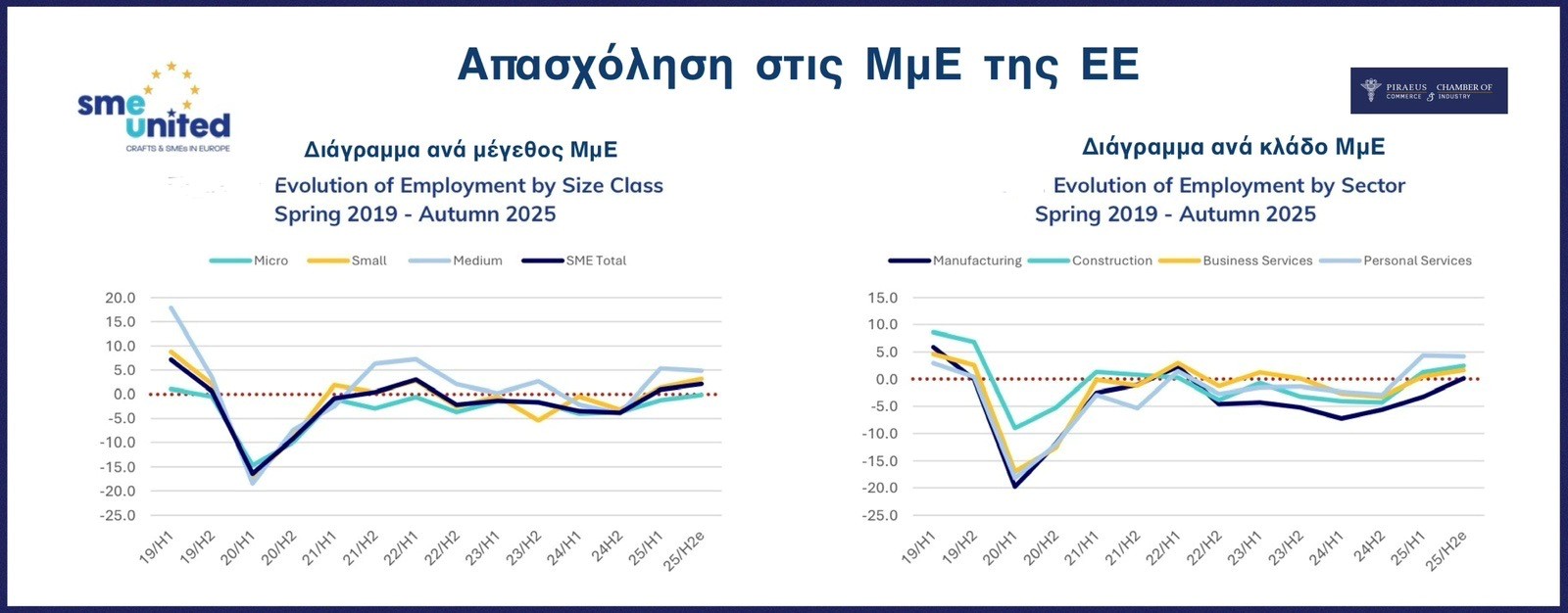 Το Εμπορικό και Βιομηχανικό Επιμελητήριο Πειραιώς, με πίνακες και διαγράμματα, ενημερώνει πως παρουσιάστηκε στις Βρυξέλλες η φθινοπωρινή έκδοση του 2025 για το «Βαρόμετρο των ΜμΕ της Ε.Ε.» από την SMEunited, που αναφέρει μια επιφυλακτική, αλλά σταθερή βελτίωση στο επιχειρηματικό περιβάλλον, για τις μικρές και μεσαίες επιχειρήσεις σε ολόκληρη την Ευρωπαϊκή Ένωση.