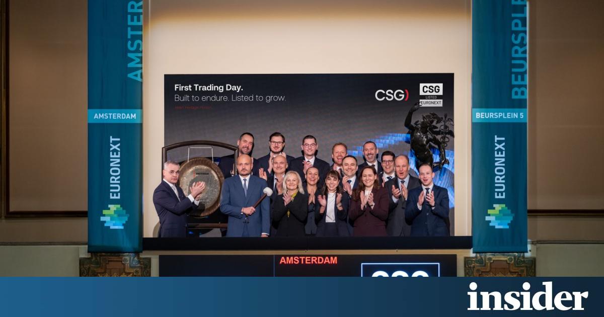 Η έναρξη της διαπραγμάτευσης σηματοδοτήθηκε συμβολικά με την κρούση του κώδωνα έναρξης των συναλλαγών στο χρηματιστήριο Euronext στο Άμστερνταμ, την οποία πραγματοποίησε αυτοπροσώπως ο Ιδιοκτήτης και Διευθύνων Σύμβουλος του ομίλου CSG, Μίχαλ Στρναντ.