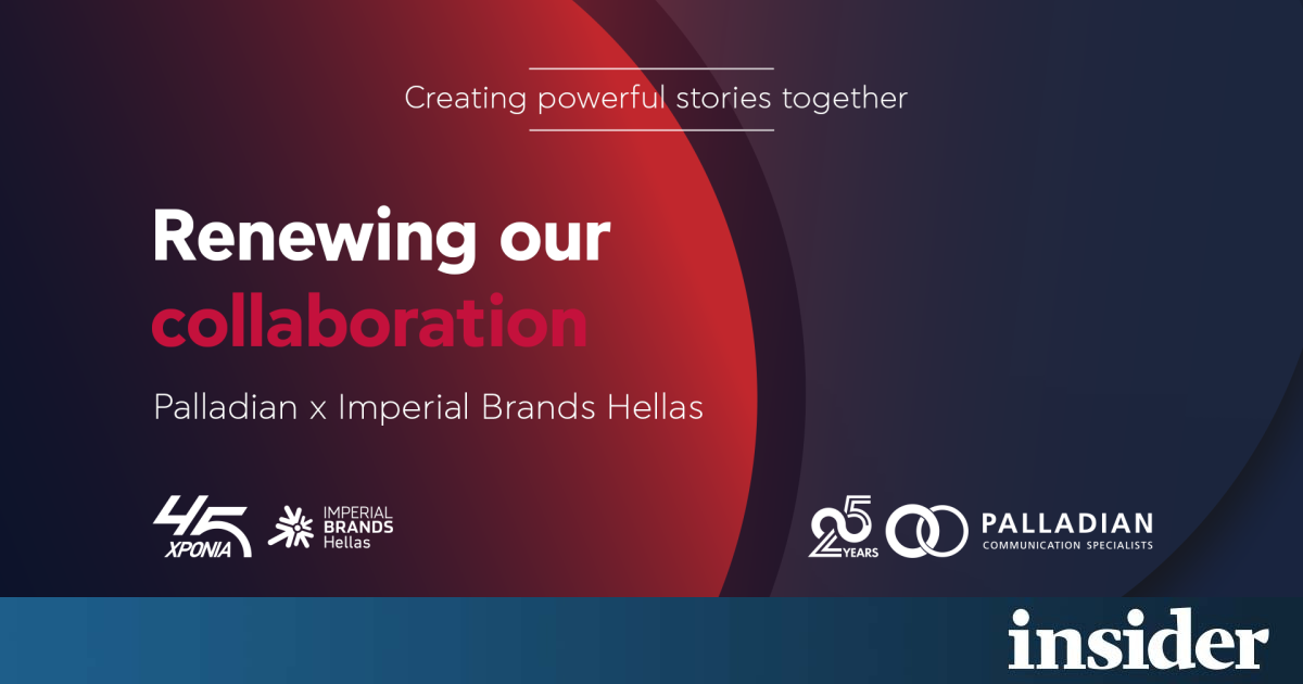 Η Palladian Communication Specialists ανακοινώνει την ανανέωση της συνεργασίας με την Imperial Brands Hellas, μέλος του διεθνούς Ομίλου Imperial Brands, συνεχίζοντας να υποστηρίζει την εταιρεία σε θέματα δημοσίων σχέσεων και επικοινωνιακού σχεδιασμού.