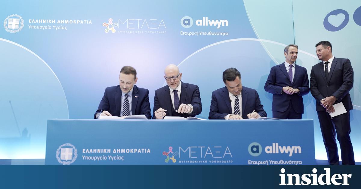 Υπογραφή μνημονίου συνεργασίας από τους Σαράντο Ευσταθόπουλο, Διοικητή του Αντικαρκινικού Νοσοκομείου «Μεταξά», Jan Karas, Πρόεδρο και Διευθύνοντα Σύμβουλο της Allwyn στην Ελλάδα και Άδωνι Γεωργιάδη, Υπουργό Υγείας, παρουσία του Πρωθυπουργού, Κυριάκου Μητσοτάκη, του Ιδρυτή και Προέδρου της Allwyn, Karel Komarek και του Υφυπουργού Υγείας, Μάριου Θεμιστοκλέους