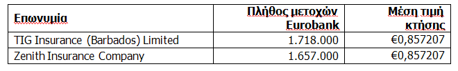 - στις 30.5.2017 οι κάτωθι θυγατρικές της Fairfax απέκτησαν τις ακόλουθες μετοχές της Eurobank: