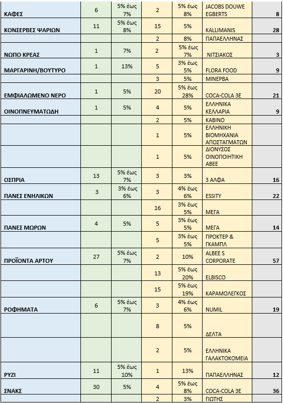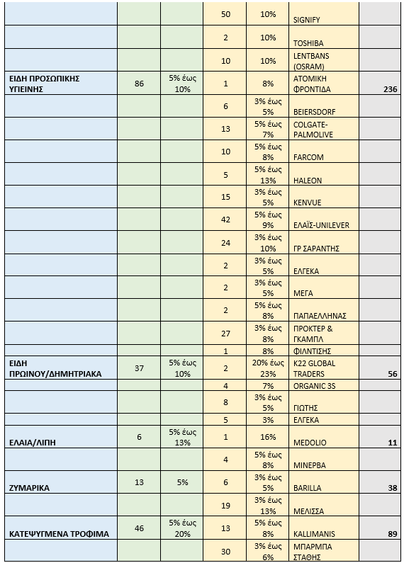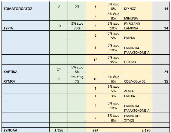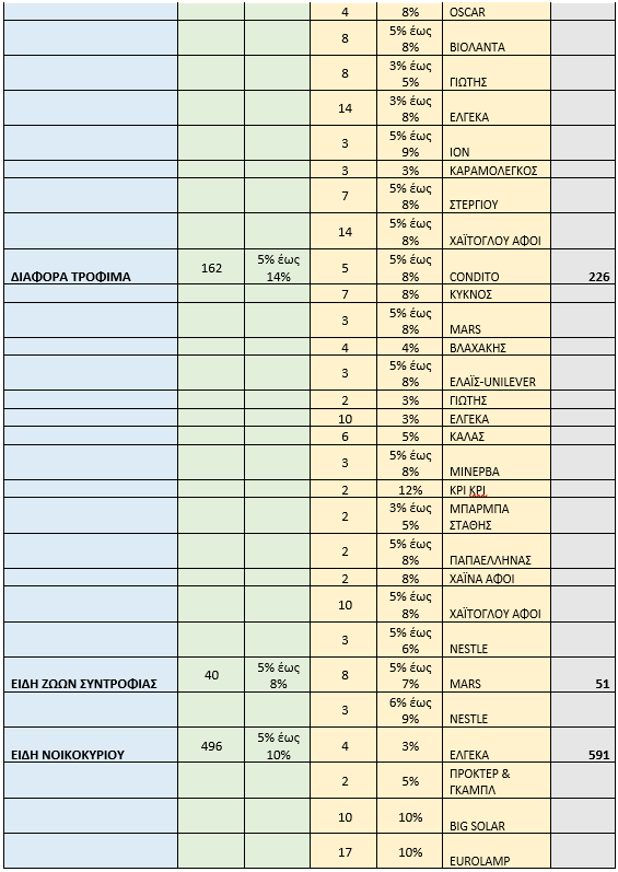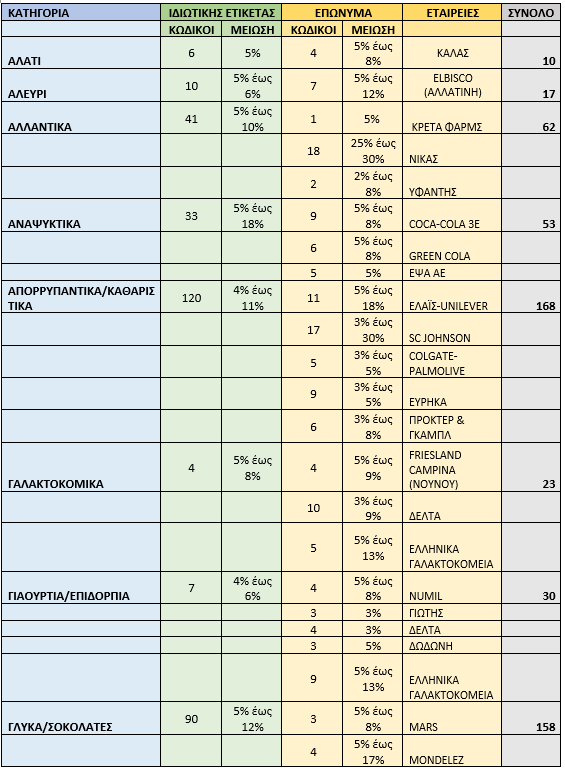 Πρόκειται συγκεκριμένα για 1.074 κωδικούς προϊόντων που αφορούν τρόφιμα και 1.106 κωδικούς μη τροφίμων.