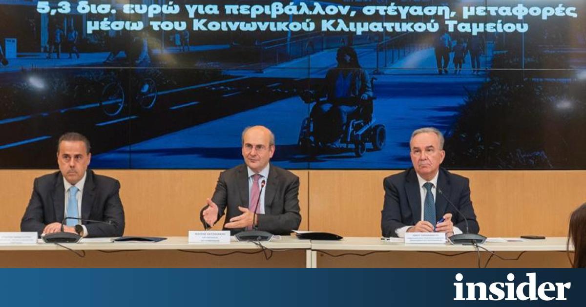 Δράσεις ύψους 5,3 δισ. ευρώ, που θα ξεκινήσουν από φέτος και θα ολοκληρωθούν μέχρι το 2032, περιλαμβάνει η ελληνική πρόταση για το Κοινωνικό Κλιματικό Ταμείο και οι οποίες, όπως τόνισε ο αντιπρόεδρος της Κυβέρνησης, Κωστής Χατζηδάκης, στοχεύουν σε 1,5 εκατομμύρια νοικοκυριά και 70.000 πολύ μικρές επιχειρήσεις.