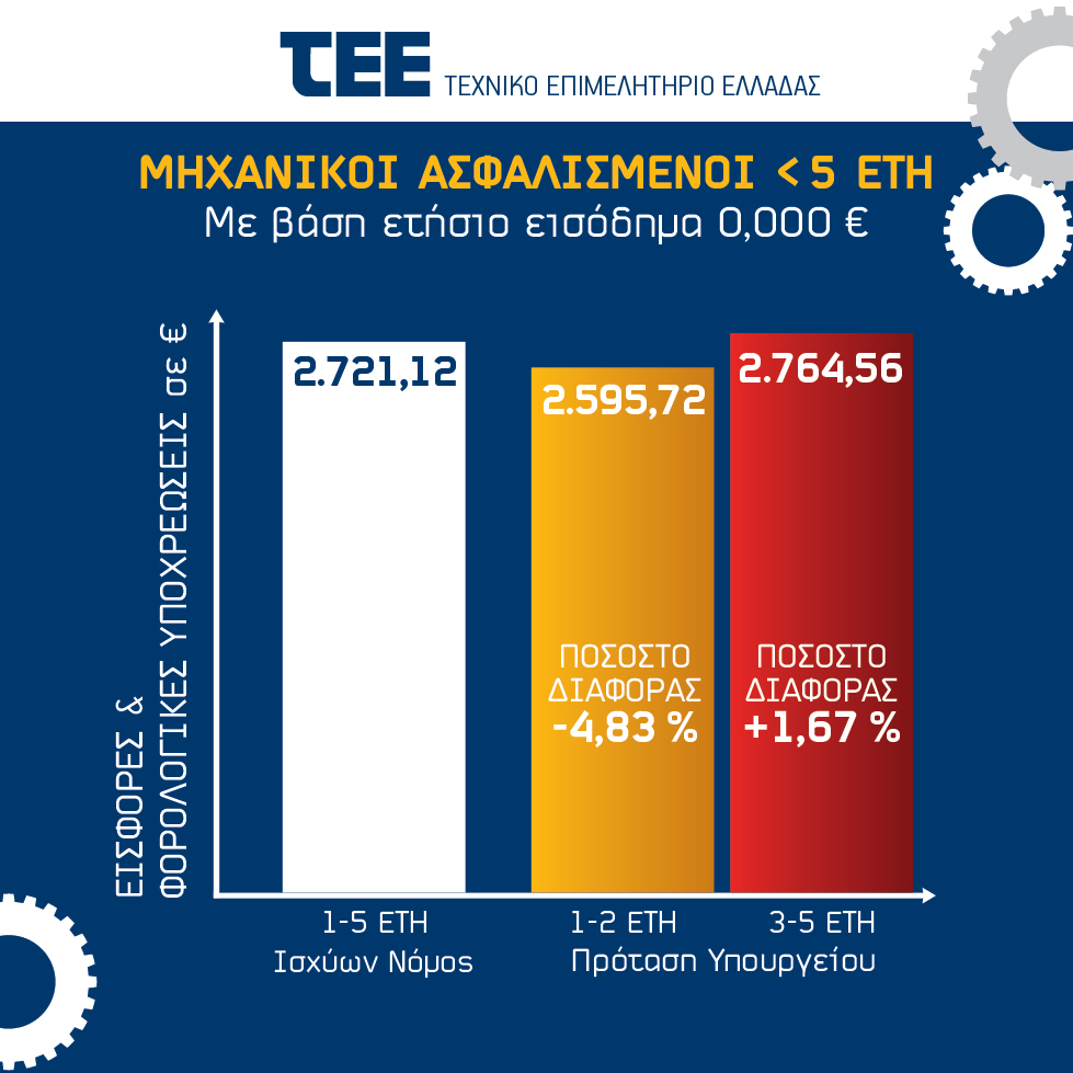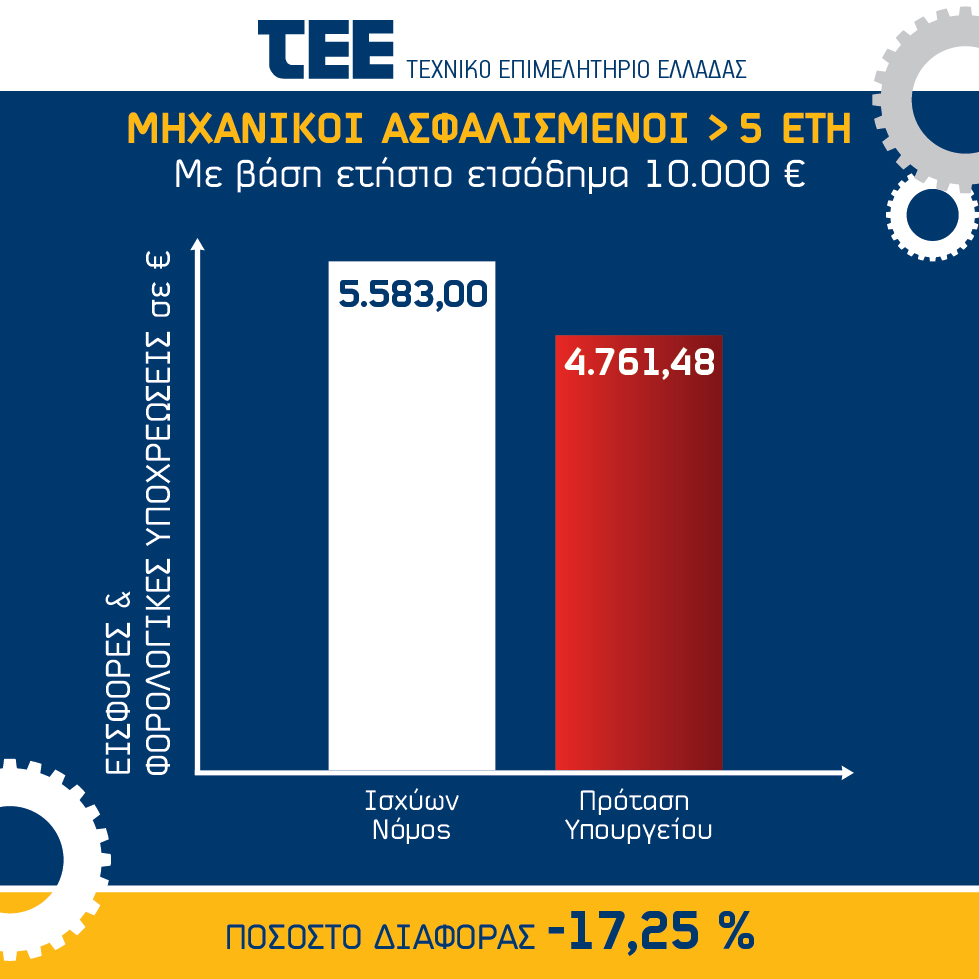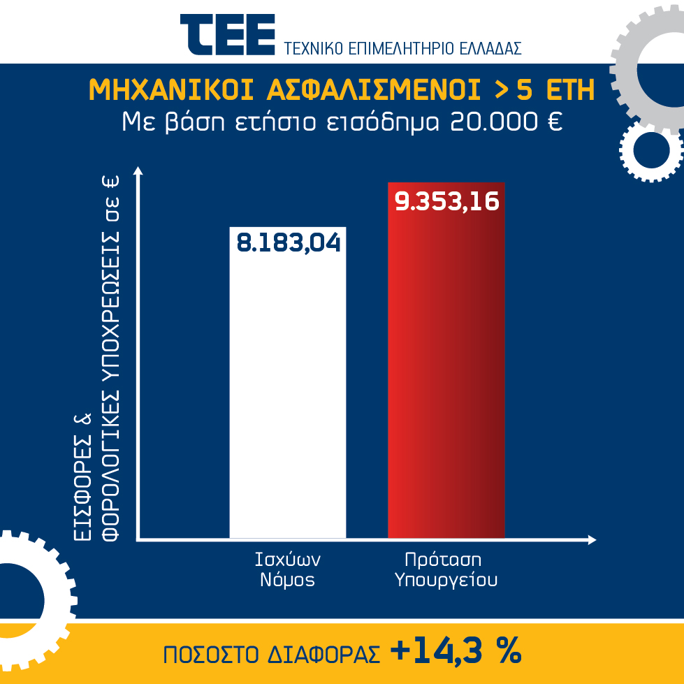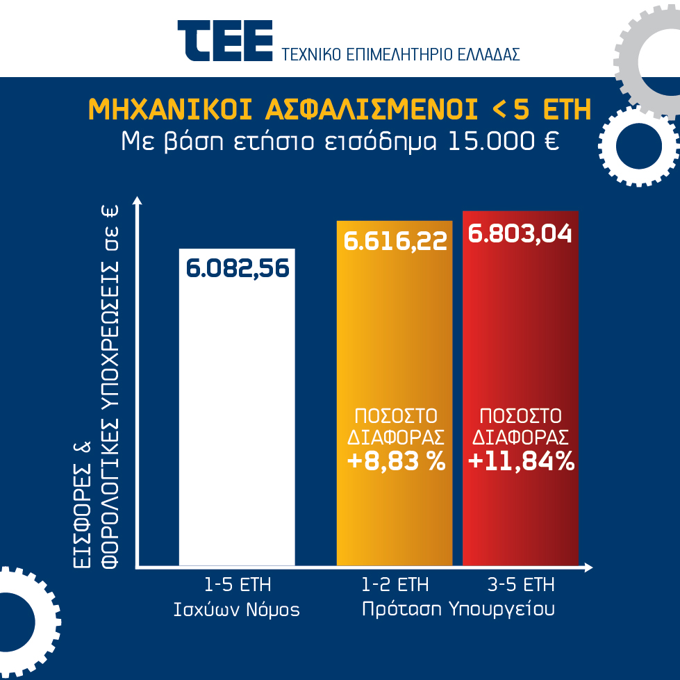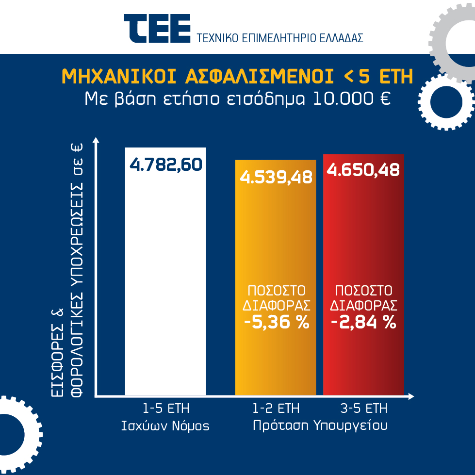 Σύμφωνα με τους συγκριτικούς πίνακες και τα παραδείγματα που κατέθεσε το ΤΕΕ, προκύπτει συνολική επιβάρυνση έως και 47% για τους διπλωματούχους μηχανικούς με εισόδημα άνω των 12.000 ευρώ, ακόμα και με τη βελτιωμένη πρόταση.