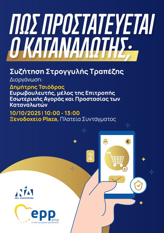 Αυτό το επίκαιρο, πανευρωπαϊκά, ερώτημα θα συζητηθεί την Παρασκευή, 10 Οκτωβρίου, στο Στρογγυλό Τραπέζι που διοργανώνει ο ευρωβουλευτής της ΝΔ, Δημήτρης Τσιόδρας, ο οποίος είναι μέλος της Επιτροπής Εσωτερικής Αγοράς και Προστασίας των Καταναλωτών του Ευρωπαϊκού Κοινοβουλίου (Ξενοδοχείο Plaza της πλατείας Συντάγματος, στις 10:00).