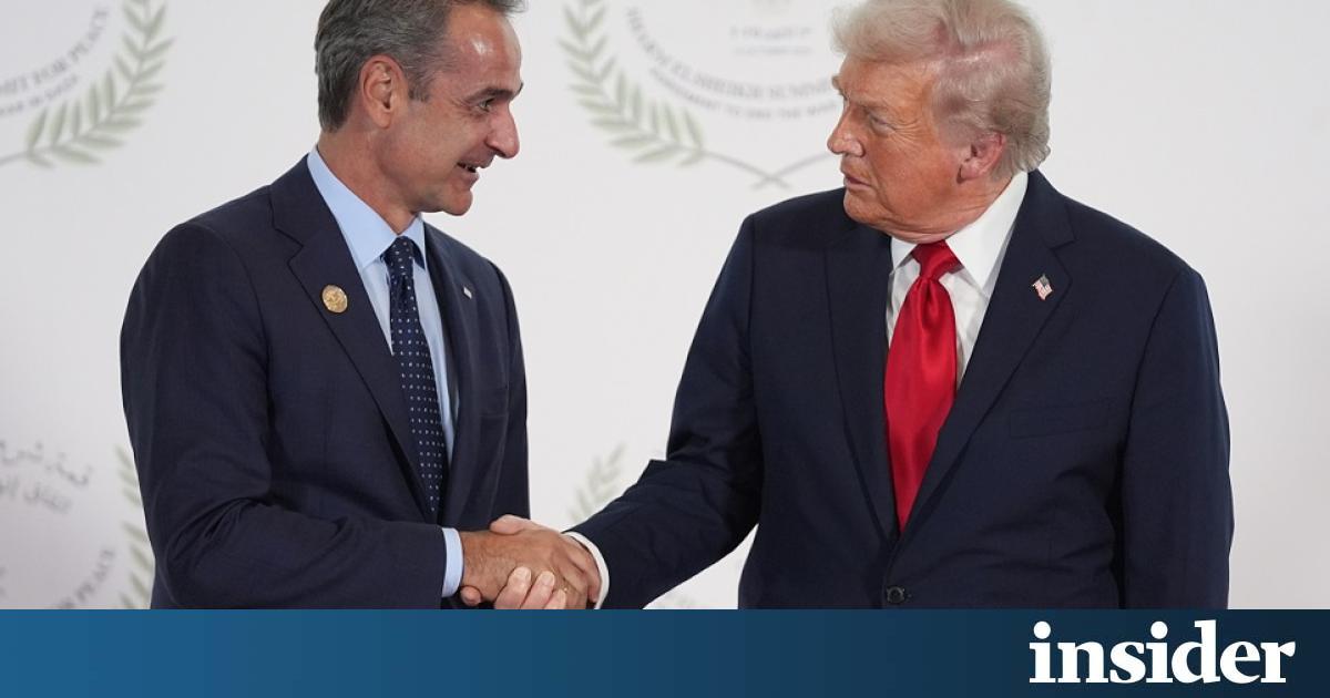 Xειραψία με τον πρόεδρο των ΗΠΑ Ντόναλντ Τραμπ είχε ο πρωθυπουργός Κυριάκος Μητσοτάκης, λίγο πριν την έναρξη της στη Σύνόδου Κορυφής για την ειρήνη στη Γάζα που διεξάγεται στο Σαρμ Ελ Σέιχ της Αιγύπτου.