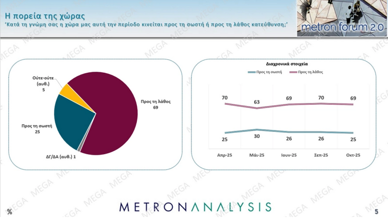 Η έρευνα των πολιτών έδειξε ότι το 69% πιστεύει ότι η χώρα οδεύει «προς τη λάθος κατεύθυνση», ενώ το 25% θεωρεί ότι οδεύουμε προς στη σωστή.