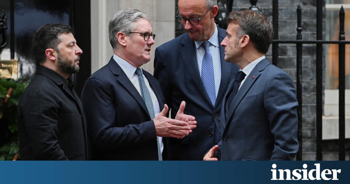 Σε μια βιαστικά προγραμματισμένη συνάντηση, ο Βρετανός πρωθυπουργός Κιρ Στάρμερ, ο Γάλλος πρόεδρος Εμανουέλ Μακρόν, ο Γερμανός καγκελάριος Φρίντριχ Μερτς και ο Ζελένσκι δήλωσαν ότι θέλουν να καταλήξουν σε συγκεκριμένα σχέδια σε περίπτωση ειρηνευτικής συμφωνίας. Βρετανική κυβερνητική πηγή δήλωσε ότι οι ηγέτες θα συζητήσουν τη χρήση των δεσμευμένων ρωσικών περιουσιακών στοιχείων.