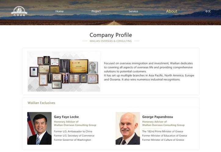 Η αξία και η χρησιμότητα του George έχει φτάσει μέχρι την Κίνα! Μία από τις μεγαλύτερες εταιρείες μετανάστευσης στην Κίνα, η Walian, που έχει σημαντική δράση στην Ελλάδα, και ως αγοραστής ακινήτων, συνεργάζεται με τον πρώην Έλληνα πρωθυπουργό, ο οποίος έχει τον ρόλο του Επίτιμου Συμβούλου στην Walian Overseas Consulting Group. Η οποία έχει έντονη δραστηριοποίηση στο πρόγραμμα της «Χρυσής Βίζας», στο οποίο άλλωστε πρωταγωνιστές είναι οι Κινέζοι μακράν του δεύτερου...