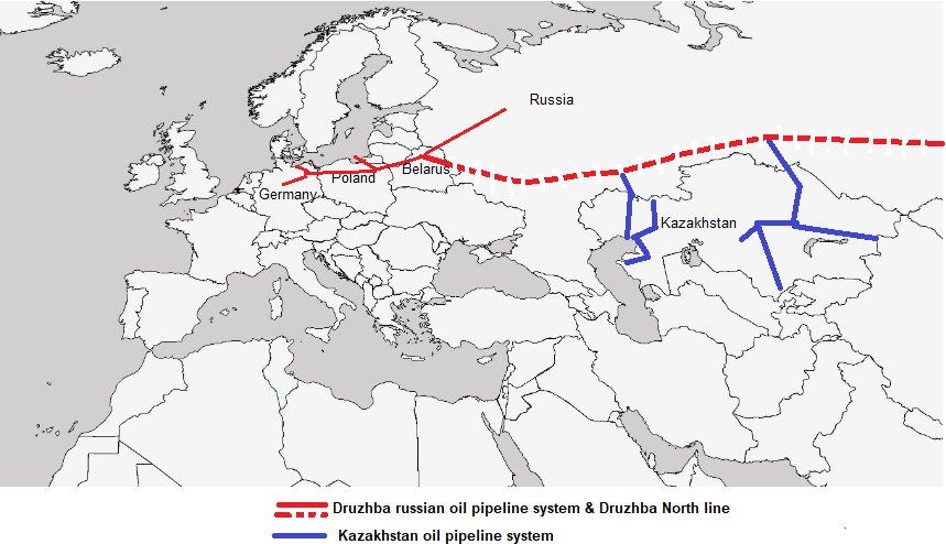 Την ίδια στιγμή που Φινλανδία και Ελλάδα χτίζουν φράχτες, απέναντι σε Ρωσία και Τουρκία, η Γερμανία, αθόρυβα, αναζητεί λύσεις στο ενεργειακό της- τουλάχιστον σε ότι αφορά το πετρέλαιο. Όπως σημειώνει ο ακαδημαϊκός διευθυντής του Greek Energy Forum Μιχ. Μαθιουλάκης, εντείνονται οι εισαγωγές πετρελαίου της Γερμανίας από το Καζακστάν μέσω του υφιστάμενου ΡΩΣΙΚΟΥ δικτύου αγωγών: