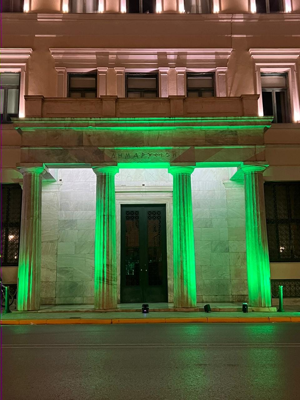 Μέχρι και το Δημαρχείο της Αθήνας βάφτηκε πράσινο