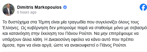 Στην ίδια γραμμή, για το δικαίωμα του πατέρα να ζητήσει όποια διερεύνηση επιθυμεί για τον θάνατο του παιδιού του, και ο βουλευτής Δημήτρης Μαρκόπουλος με ανάρτηση
