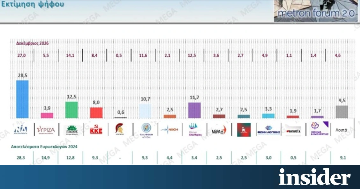 Με τη δημοσκόπηση της Metron Analysis για το Mega κλείνει η εβδομάδα και οι ελπίδες για αλλαγή πολιτικού σκηνικού μετατοπίζονται για την άνοιξη, όταν αναμένεται να ανακοινωθούν τα κόμματα του Αλέξη Τσίπρα και της Μαρίας Καρυστιανού.