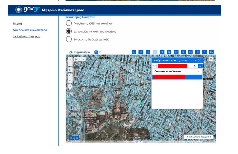 - Η ηλεκτρονική εφαρμογή δίνει 3 επιλογές για τον εντοπισμό του ακινήτου
