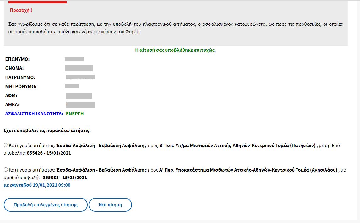 10. Τέλος, εμφανίζεται το αίτημά σας και μπορείτε να κάνετε και νέα αίτηση, ακολουθώντας τα παραπάνω βήματα