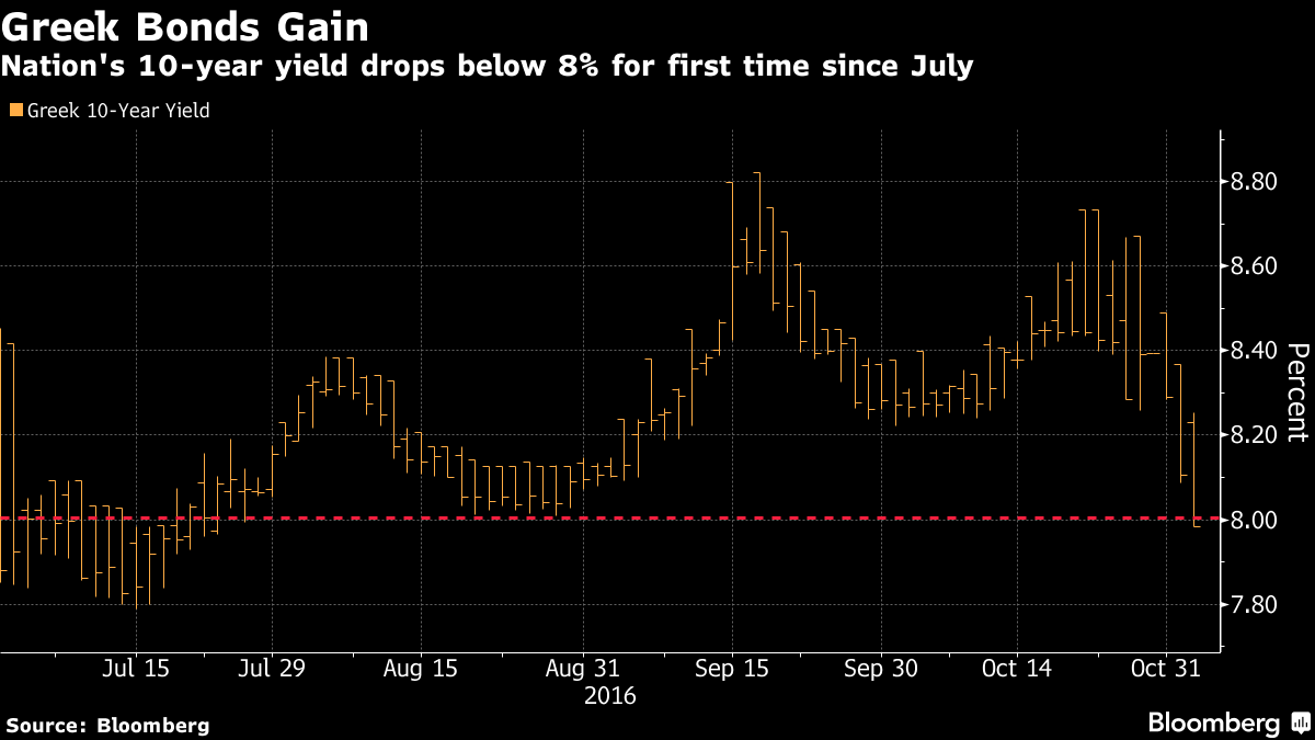 Κάτω από το 8% υποχώρησε το 10ετές ομόλογο ελληνικού δημοσίου την Τετάρτη, για πρώτη φορά μετά από τις 19 Ιουλίου. Το ερώτημα που τίθεται είναι εάν η αποκλιμάκωση αυτή αντανακλά αναζωπύρωση του ενδιαφέροντος για τους ελληνικούς τίτλους ή είναι αποτέλεσμα μιας σπασμωδικής κίνησης.