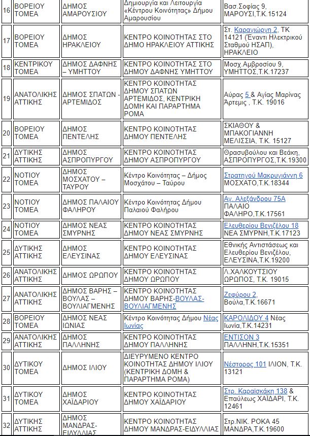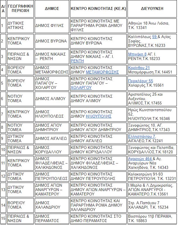 Τα 50 Κέντρα Κοινότητας στα οποία μπορούν να κάνουν οι πολίτες τις αιτήσεις τους είναι τα εξής: