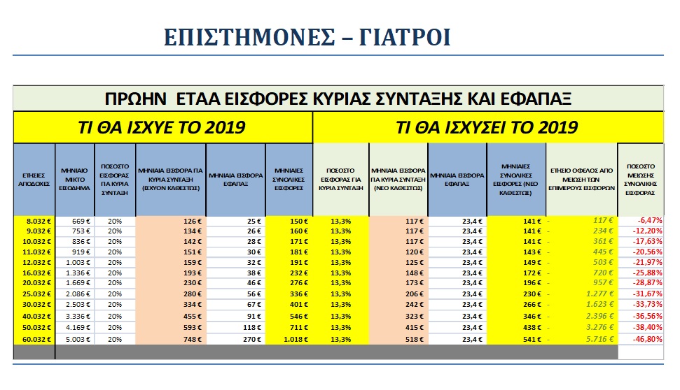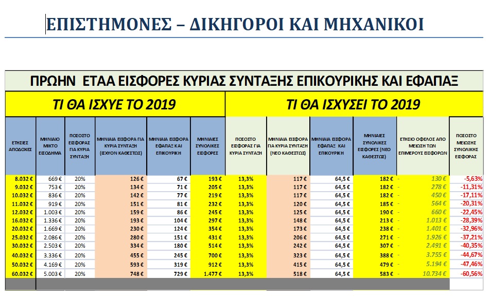 Έτσι για 50.000 επιστήμονες του πρώην ΕΤΑΑ το όφελος κυμαίνεται από 117 ευρώ έως και 10.734 ευρώ (μείωση 5,63% έως 60,56%)