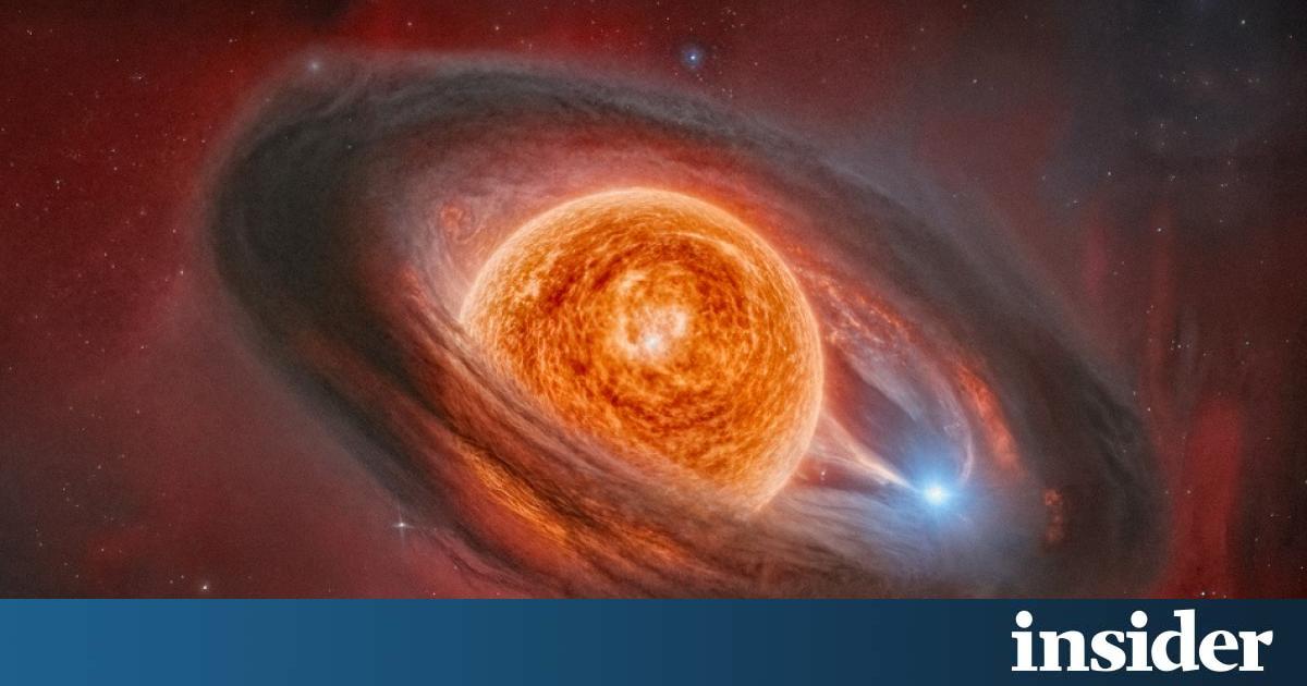 *Επισυνάπτεται καλλιτεχνική απεικόνιση του WOH G64, κατά την πρόσφατη μεταμόρφωσή του, όπου αποκαλύπτεται ένας κίτρινος υπεργίγαντας και ένας θερμός συνοδός αστέρας, περιβαλλόμενοι από έναν δακτύλιο σκόνης. Credit: Daniel Cea Martinez. Η φωτογραφία έχει δημιουργηθεί με τεχνητή νοημοσύνη και την παραχώρησε το Εθνικό Αστεροσκοπείο Αθηνών στο ΑΠΕ-ΜΠΕ για χρήση.