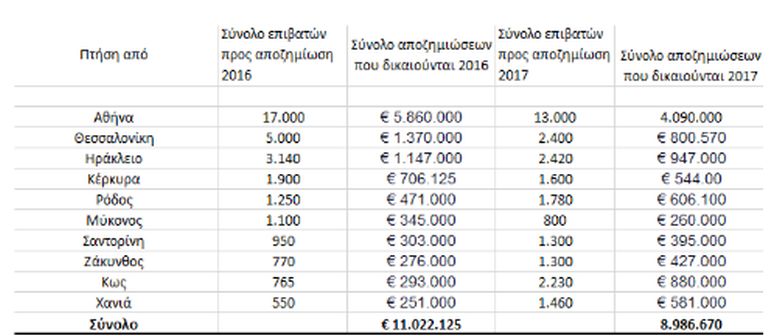 Πιο συγκεκριμένα, οι επιβάτες της Ελλάδας δικαιούνται συνολικά για το τρίμηνο Ιούνιος – Αύγουστος 2017, το ποσό των € 8.986.670 σε σχέση με το ποσό των € 11.022.125 που ίσχυε για το αντίστοιχο τρίμηνο το 2016.