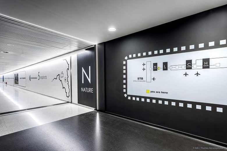 Αφετηρία του αναβαθμισμένου δορυφορικού σταθμού είναι ο Υπόγειος Διάδρομος (Underground Link) που συνδέει το Κεντρικό Κτήριο με τον Δορυφορικό Αεροσταθμό. Στα 600 περίπου μέτρα του η διαδρομή μετατρέπεται σε μια συναρπαστική κιναισθητική εμπειρία, που ξετυλίγεται μέσα από εικόνες και χάρτες της Αθήνας, σε τέσσερις ενότητες: Ιστορία (History), Πολιτισμός (Culture), Ζωή (Life) και Φύση (Nature).